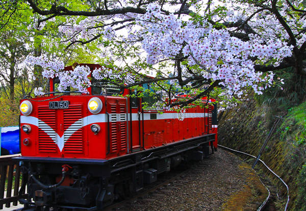 最懷舊:阿里山坐森林小火車,在櫻花海里穿梭