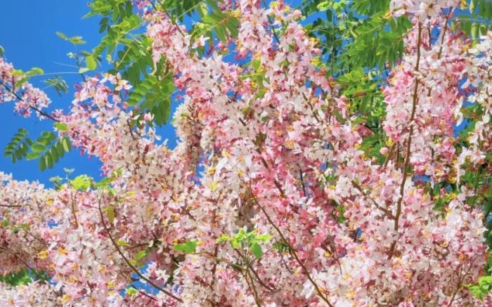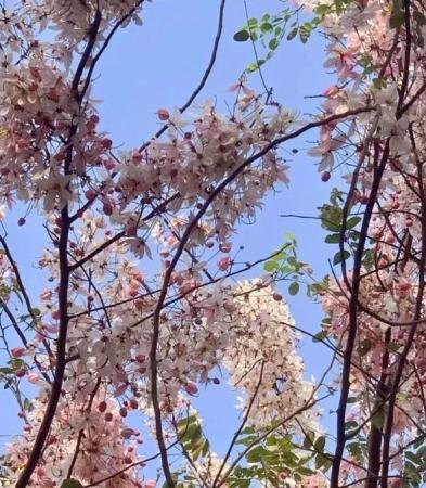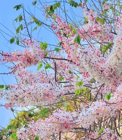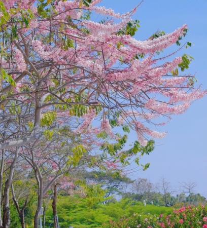 花旗木叫「泰國櫻花」,原產於泰國、印度、緬甸等東南亞各地,屬於豆科臘腸樹屬的植物,花期3-5月。